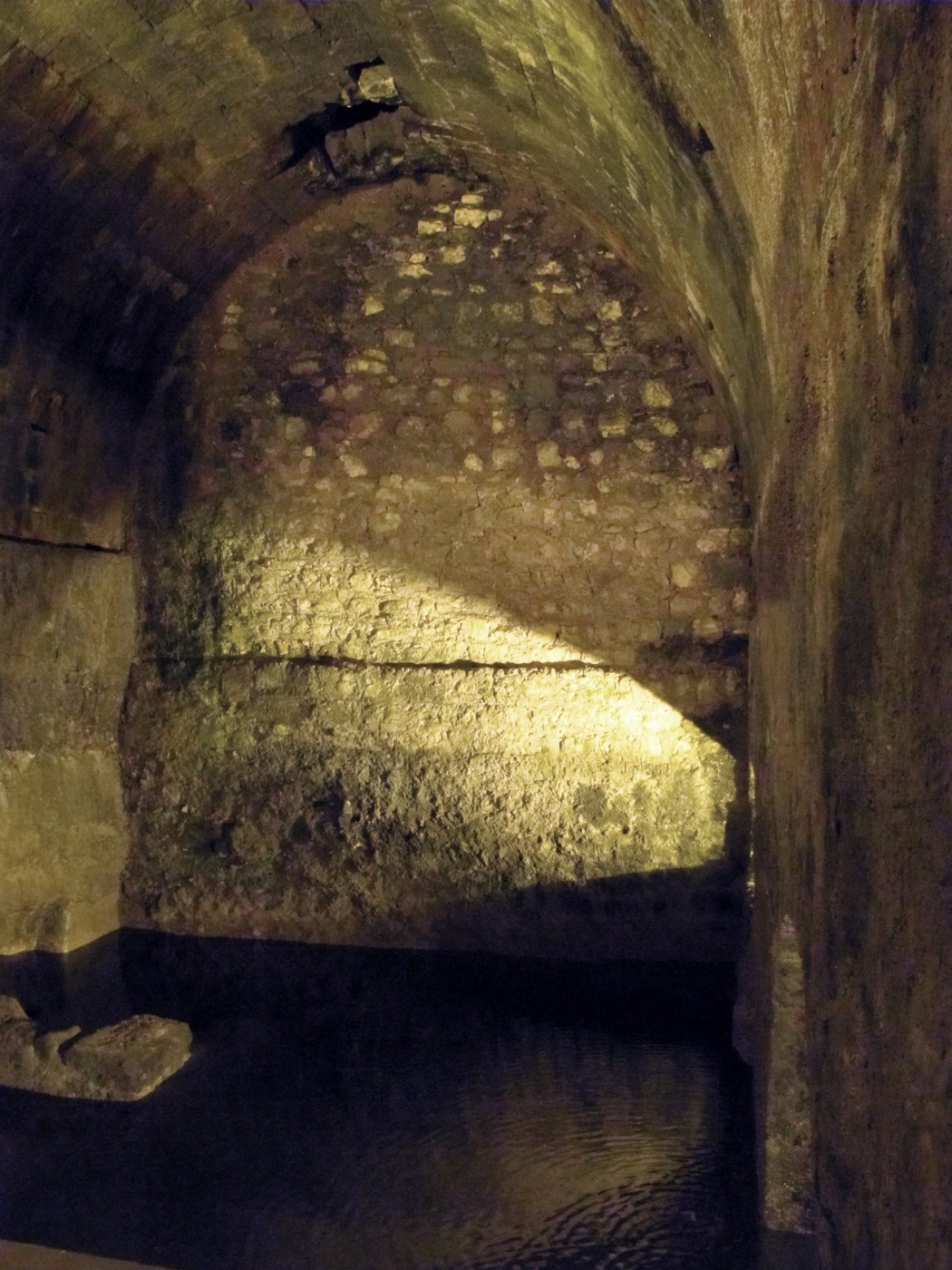 In 135 AD, Hadrian built arched supports and vaults over these pools and used them as cisterns with a marketplace built over the tops of the arched vaults on the street level above.