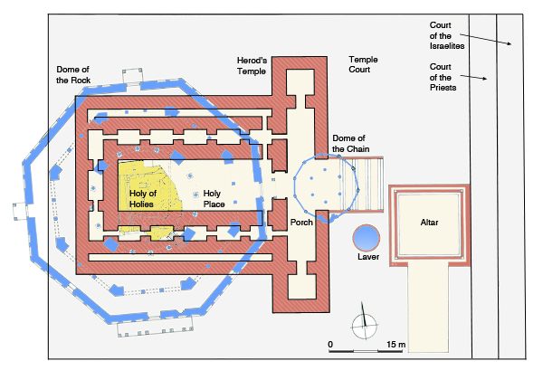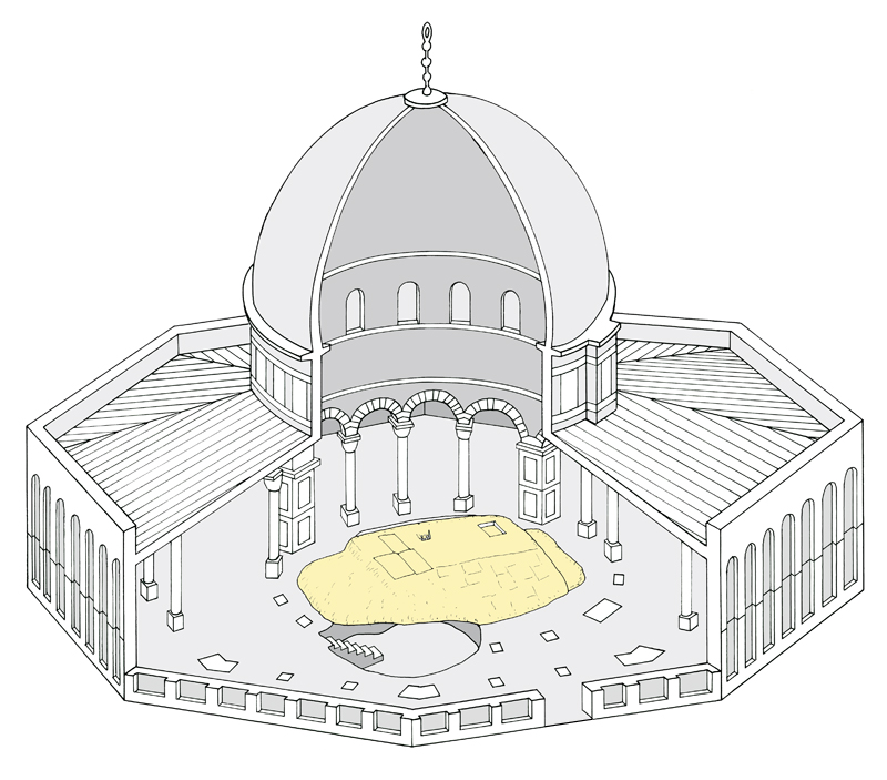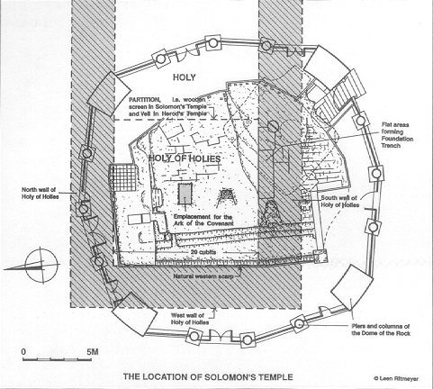 The Dome of the Rock on the Jewish Temple Mount is built over the bedrock of Mount Moriah at the location of the Jewish Temples built by Solomon, Zerubbabel and Herod. A depression in the bedrock reveals the spot where the Ark of the Covenant sat. The rectangular cut out and leveled depression matches the size of the Ark of the Covenant that sat inside the Temple in the Holy of Holies.