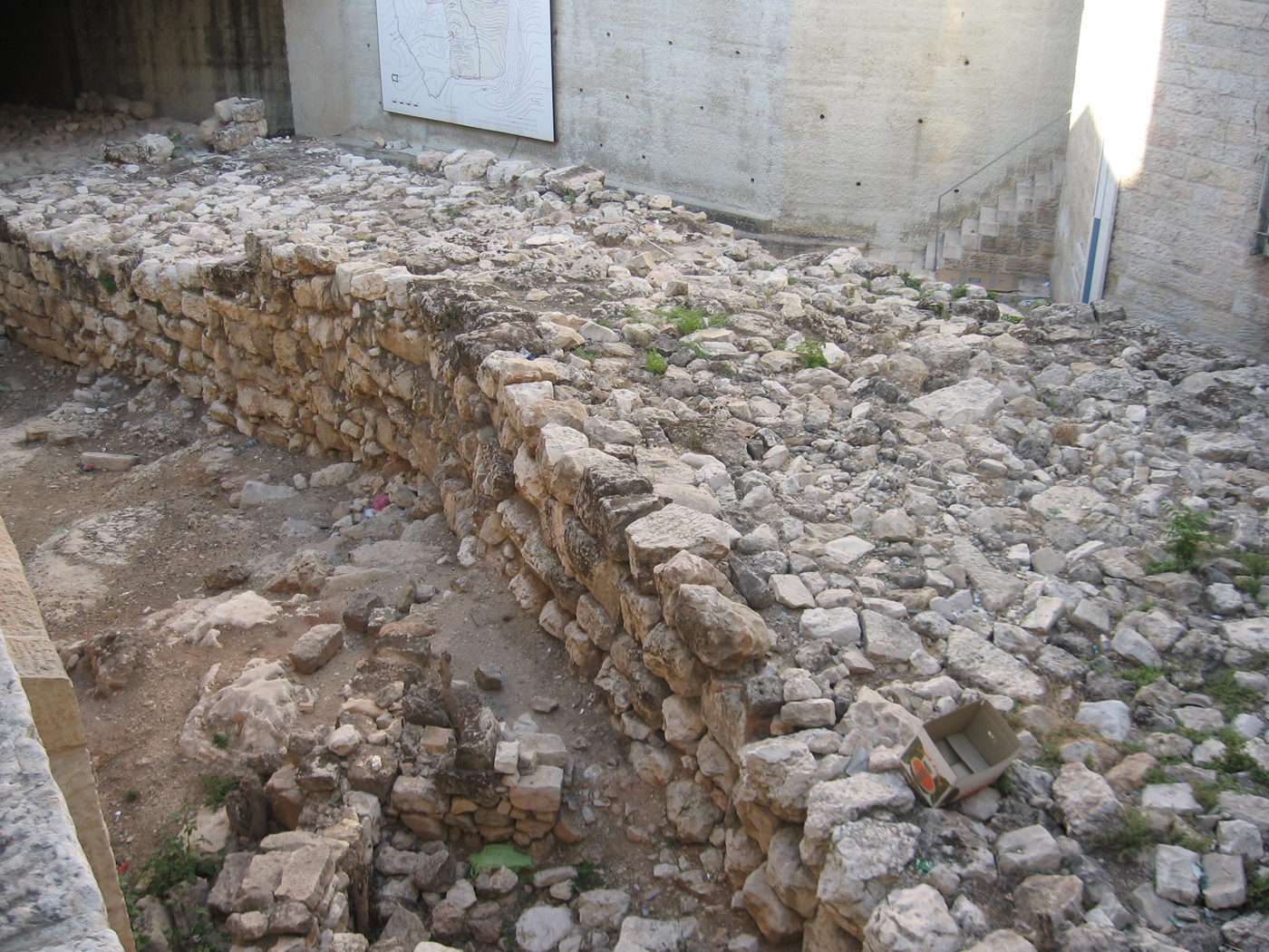 The Broad Wall - Part of the 22 foot wide wall built by Hezekiah to enclose the western portion of Jerusalem in 721 BC when the people of northern Israel fled to Jerusalem during the invasion of the northern country of Israel by the Assyrians as mentioned in Isaiah 22:8-11 and Nehemiah 12:38. (details)
