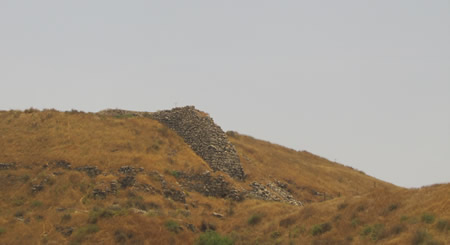 This is a model of the ramp built by the Romans to capture Masada in 72 AD. Notice the rock wall that was built by the Romans to encircle Masada to prevent Jews from escaping. Also, see the wall built to encircled the location of one of their Roman military camps. (More Masada here)