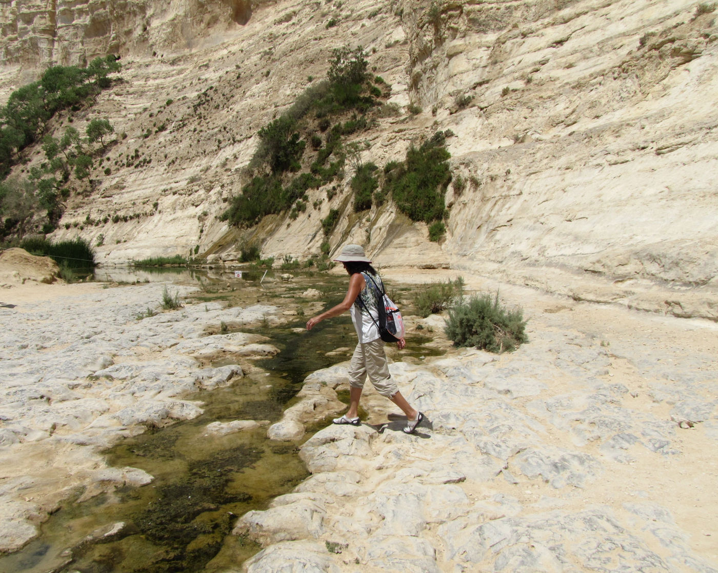 Toni walking in a wadi in the Negev of Judah.