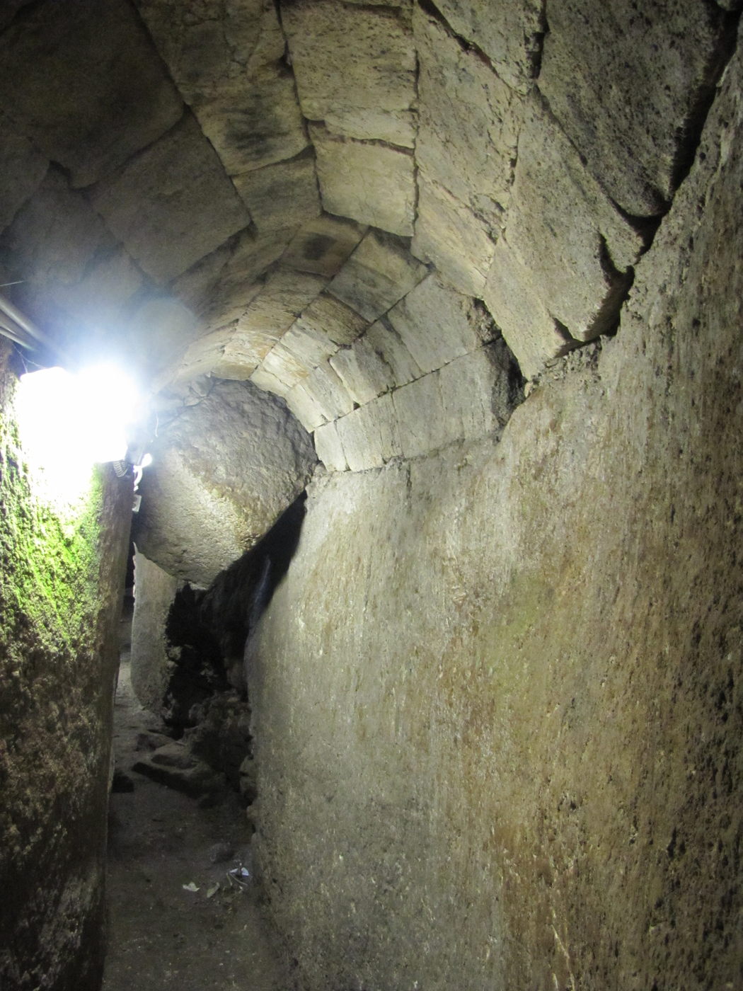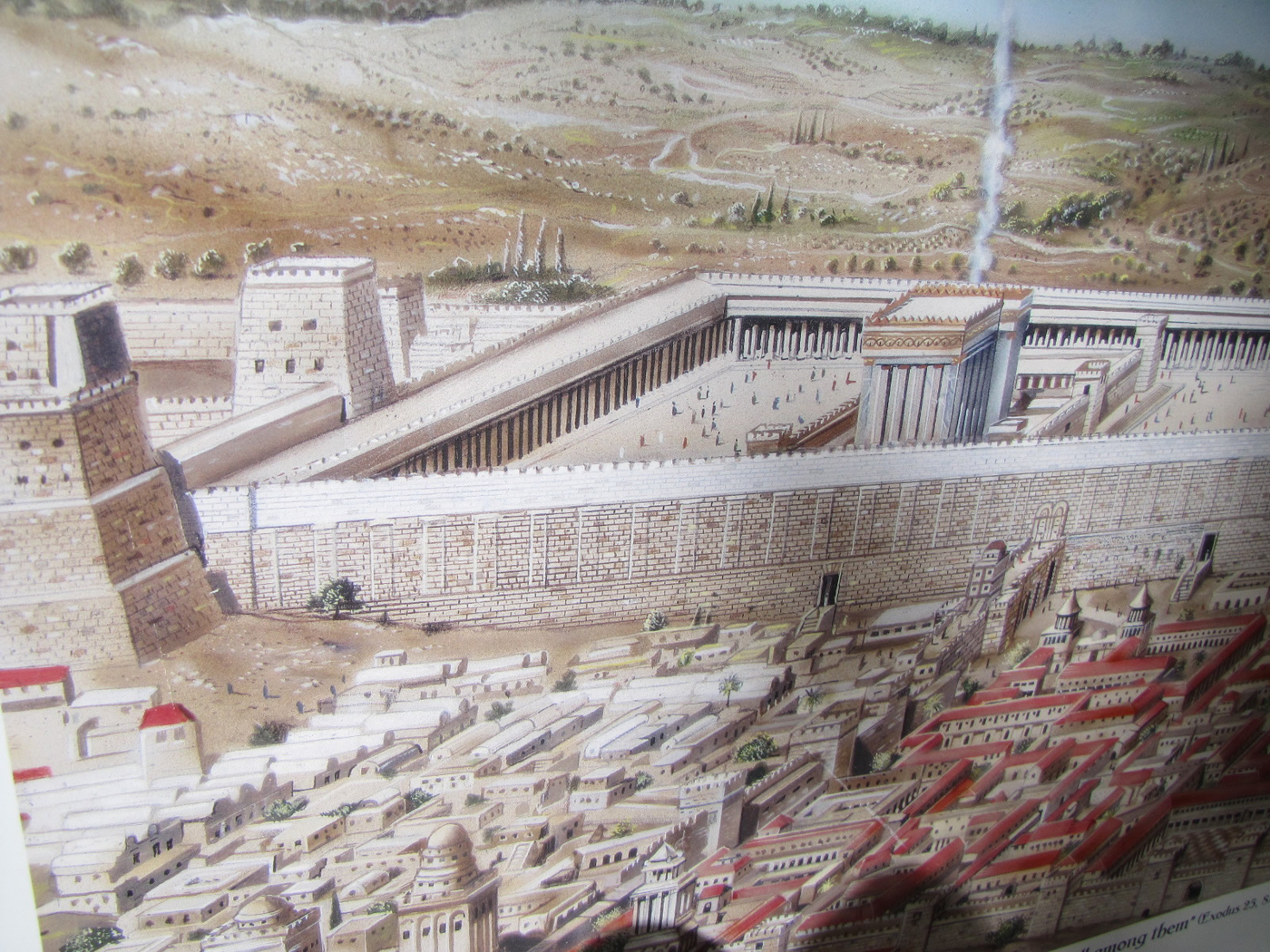 Pavement stones running along the west wall of the temple mount show the result of being crushed by stones that fell from the temple mount above during the Roman destruction of the city and the temple in 70 AD. (click on image for larger size)