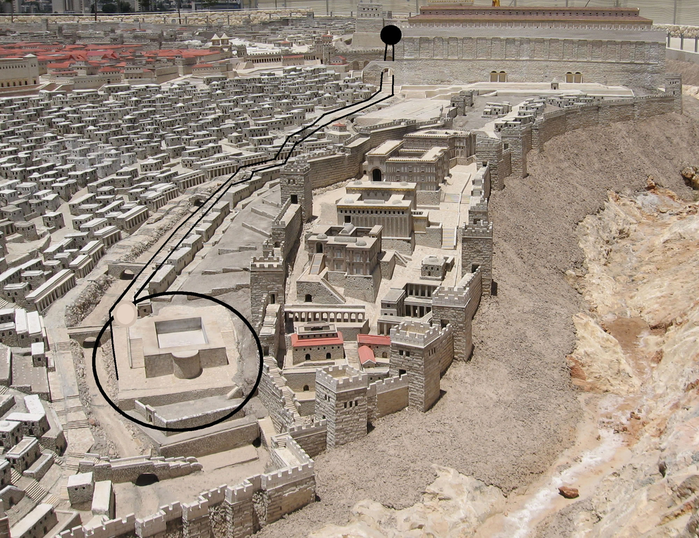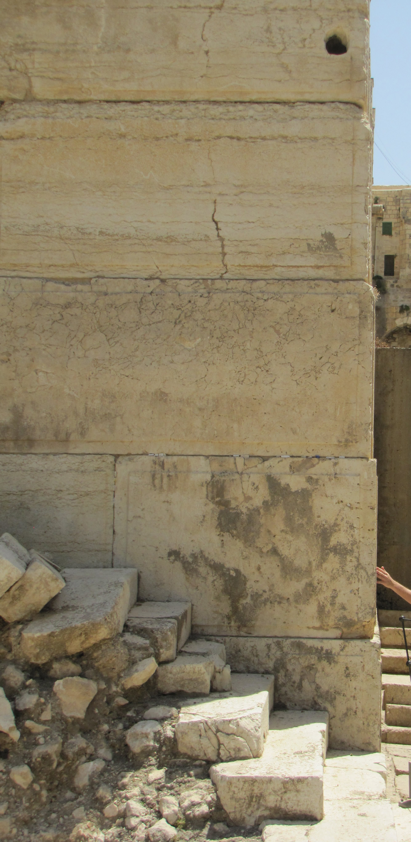 The inscription on the stone that fell from the top of the SW corner of the Temple Mount and served as a railing and as a place to stand to sound the trumpet. This inscription says, "For [or to] the place of trumpeting to...."