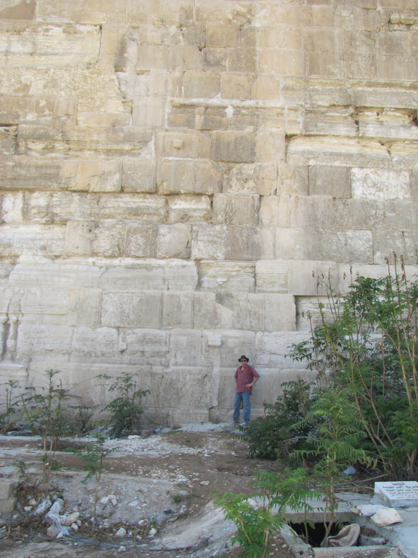 Galyn stands by some of the Herodian ashlar stones at the south end of the Eastern wall of the Temple Mount, which is also the east wall of the Old City Jerusalem. (Details)