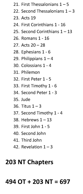 COMPLETE TEXT - Read 3-4 chapters a day (1-2 morning, 2 evening) to read through the entire text of Scripture in Chronological order. A link to a .pdf with all the scripture references is here.